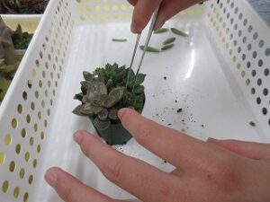 多肉植物が趣味の職員が育てた多肉植物を持ち寄り、
